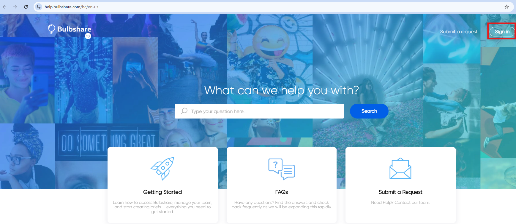 Note: For convenience, you can also bookmark the URL: https://help.bulbshare.com/hc/en-us/requests/new which directly takes you to the ticket submission form.