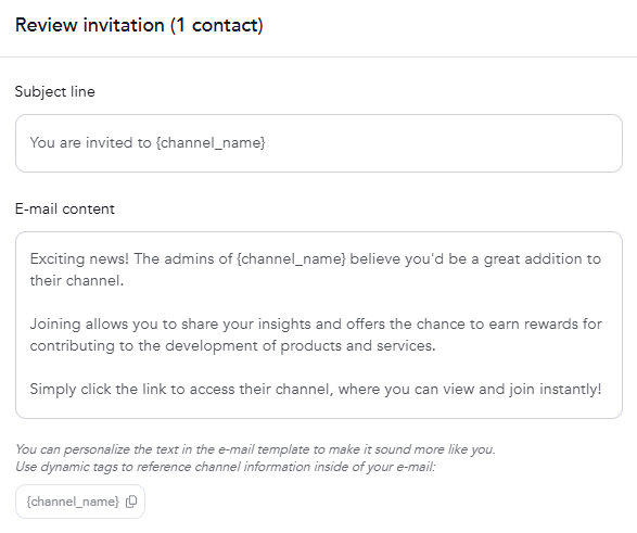 You can adjust the message to the community member(s) you are inviting. Once sent - they will receive your invitation to join the channel.